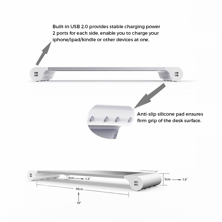 •  Comes with 4 USB ports.  • Multi-purpose support, can be used to support monitors up to 30lbs.