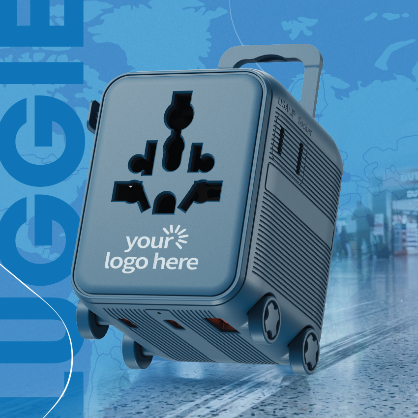 With its unique luggage-shaped design, Luggie is the universal adapter that combines practicality and wanderlust.